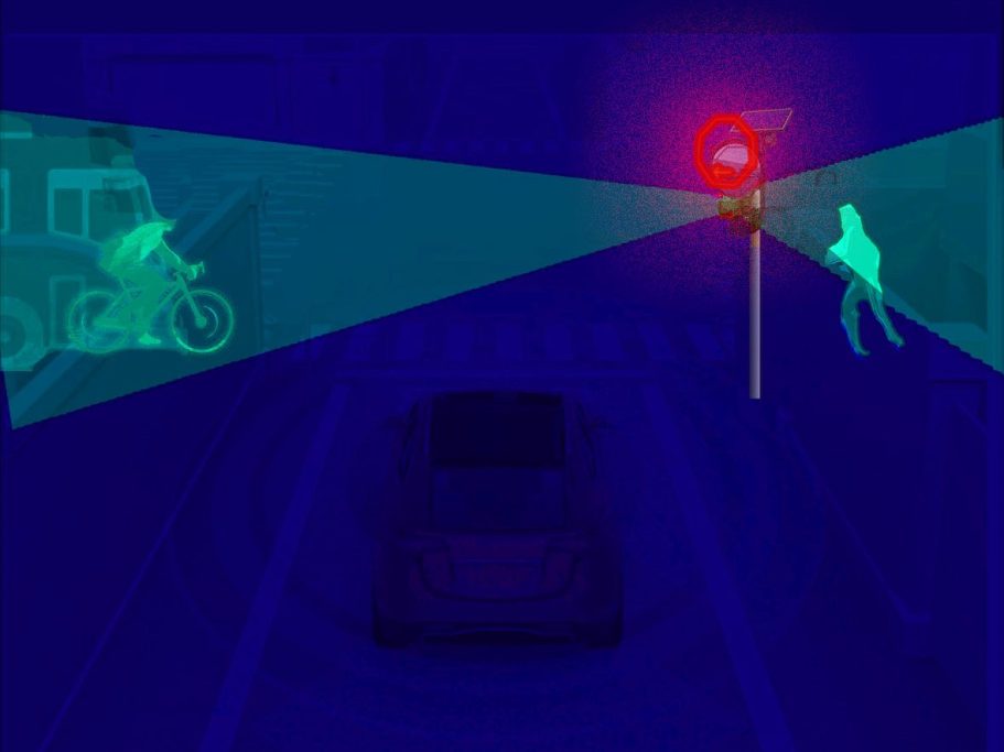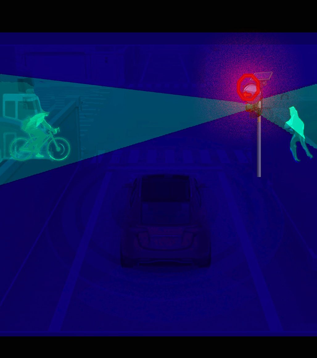 The vehicles obstacle sensors only see around the perimeter of the vehicle, while the mirror will look down the street on both directions for up to 50 meters.